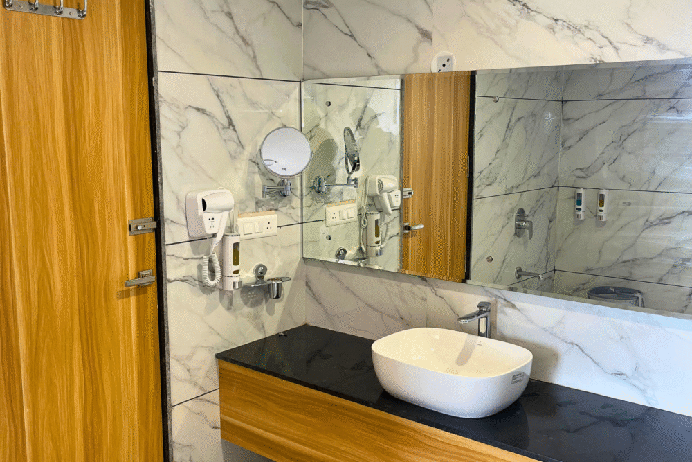 Enjoy in-room facilities like a tea/coffee kettle, hair dryer, dental kit, AC, and well-maintained washrooms with premium fittings. Though moderately sized, the Deluxe Rooms ensure you never miss out on quality or care.
