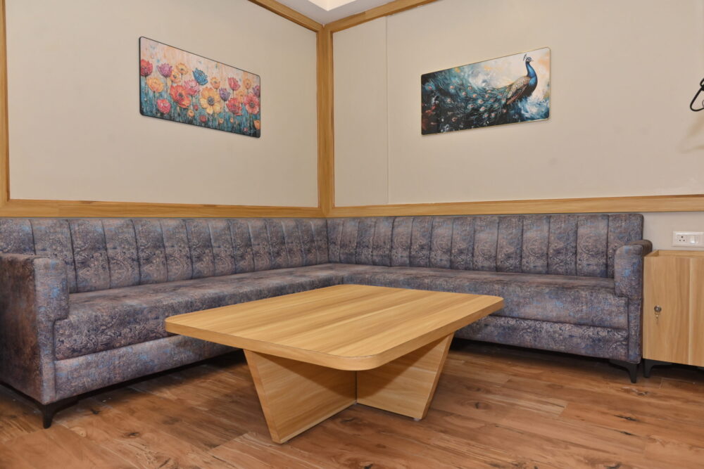 Indulge in the finest living experience with our Suite Room, designed for those who appreciate space, privacy, and sophistication. The suite features a separate lounge area with a plush sofa set — perfect for meetings or relaxed evenings. It includes two LED TVs (one in the lounge and one in the bedroom), a spacious bathroom with a stylish glass window partition, and elegant interiors that create an ambiance of modern luxury.